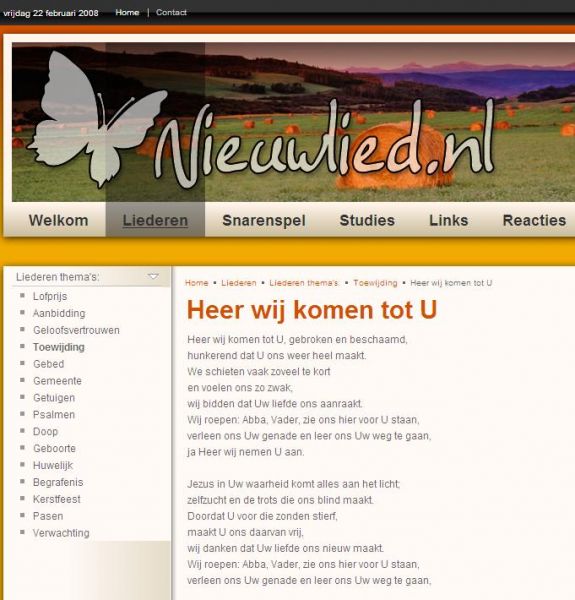 22-02-08Gitarist Filip Leenman heeft deze maand een website online gebracht waar kerkliederen gedownload kunnen worden. De tekst en mp3-bestanden kunnen bezoekers gratis van de website afhalen.