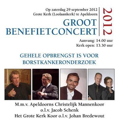 Mis dit unieke concert niet, en draag uw steentje bij aan het belangrijke werk dat artsen doen om borstkanker een halt toe te roepen. Kaarten zijn te bestellen bij de VVV Apeldoorn en bij de koorleden zelf, via de email karinoverduin@hotmail.com of bel met 078-6818260. Verdere informatie over het concert staat in onze .