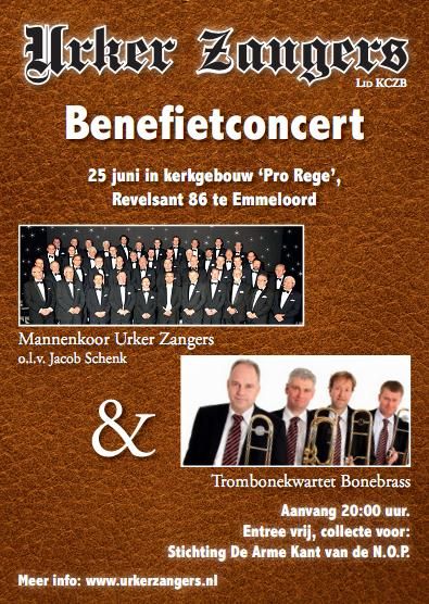Het idee om een benefietconcert te organiseren om zo geld in te zamelen voor Stichting ‘De arme kant van de N.O.P. komt van koorlid Eeuwe Weening. Het concert is gratis, wel wordt er een collecte gehouden. Het koor 'Urker Zangers' hoopt dat de bezoekers een gulle donatie doen voor mensen die het momenteel financieel erg moeilijk hebben.